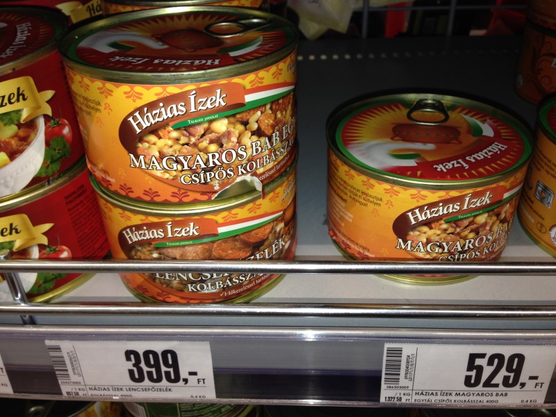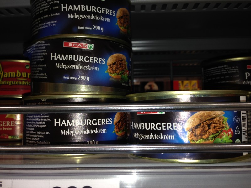 When I put these photos up pf canned meat items in a Hungarian forum and asked for help identifying them, one local expressed concern about what outsiders would think about Hungarian supermarkets. Just to clarify– these are not necessarily the most popular Hungarian items– just the most unusual.